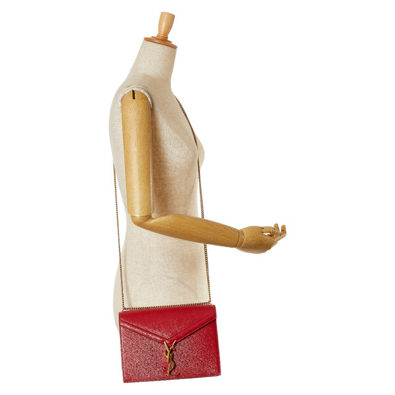 サンローラン YSLロゴ チェーン ショルダーバッグ レッド レザー レディース SAINT LAURENT 【中古】