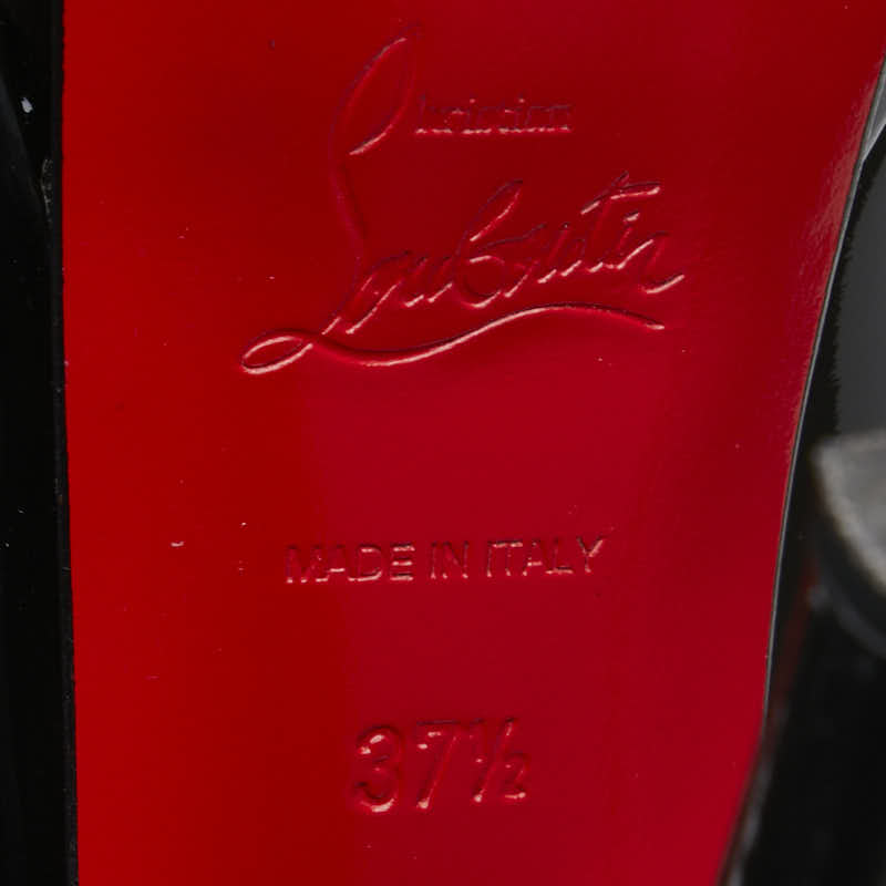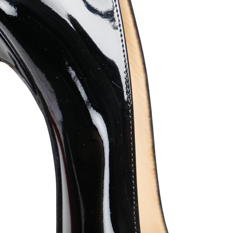 クリスチャンルブタン ラウンドトゥ ピンヒール パンプス サイズ:37 1/2 ブラック レッド エナメル レザー レディース Christian Louboutin 【中古】
