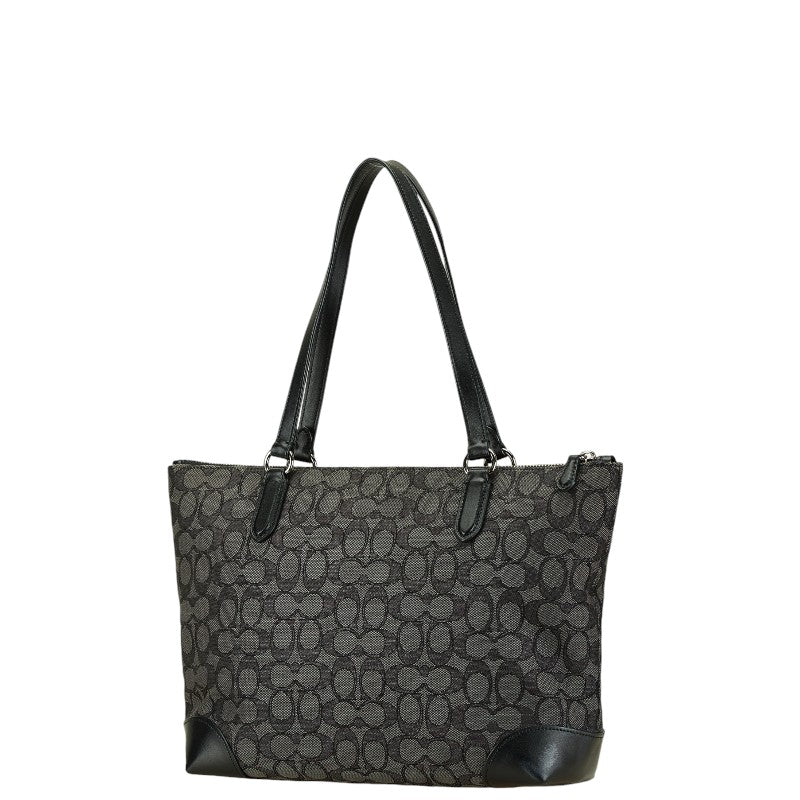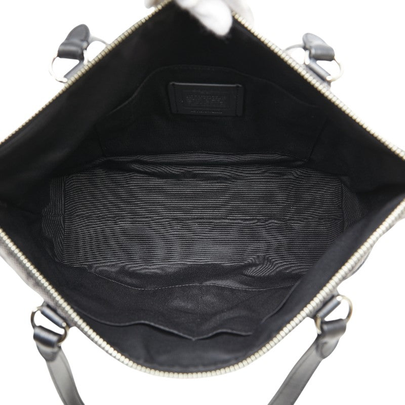 コーチ シグネチャー ハンドバッグ トートバッグ グレー ブラック キャンバス レザー レディース COACH 【中古】