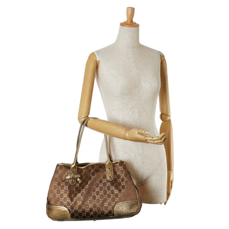 グッチ GGキャンバス プリンシー リボン トートバッグ ショルダーバッグ 163805 ゴールド ブラウン キャンバス レザー レディース GUCCI 【中古】