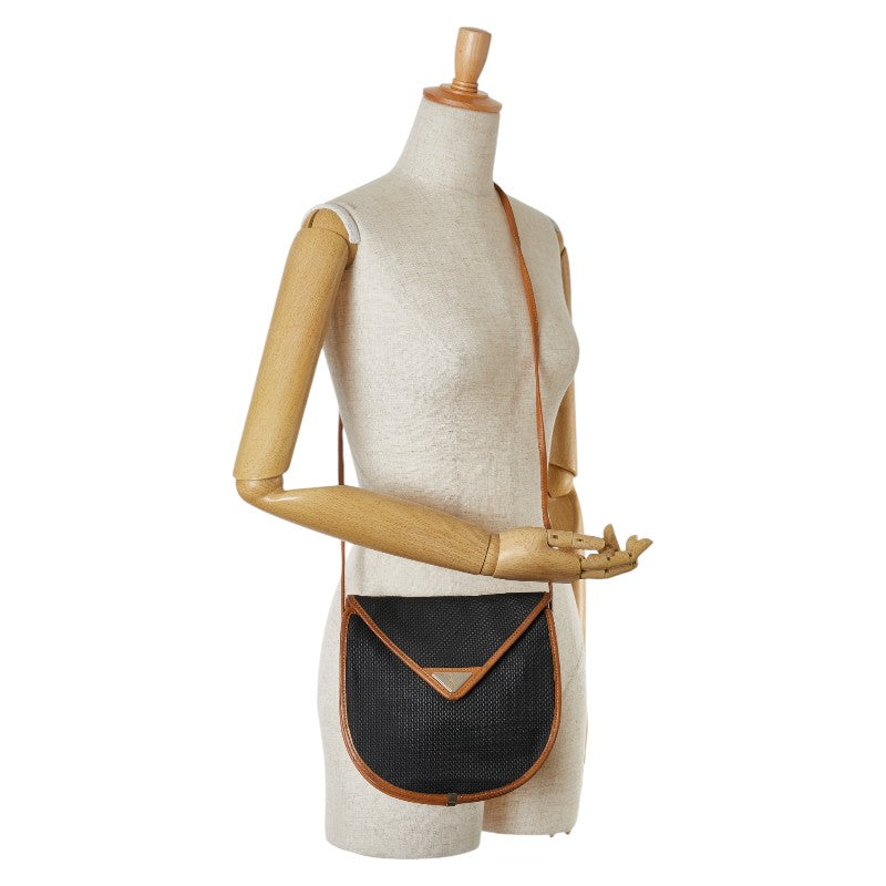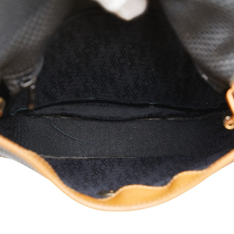 サンローラン YSLロゴ プレート 斜め掛け ショルダーバッグ ブラック ブラウン PVC レザー レディース SAINT LAURENT 【中古】