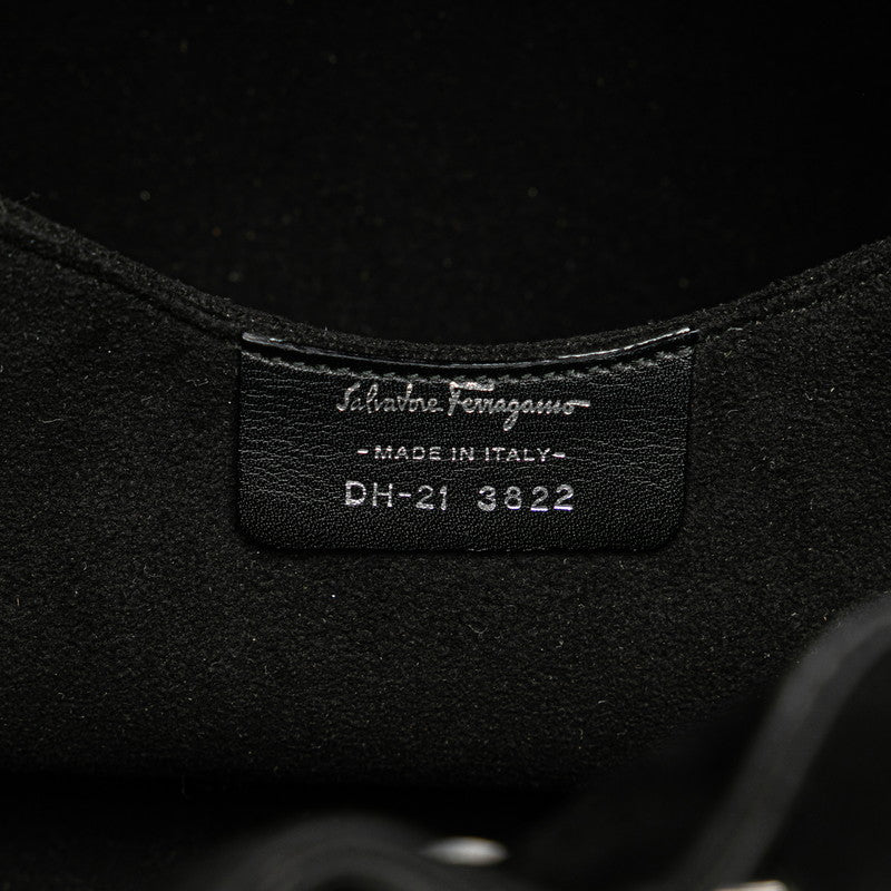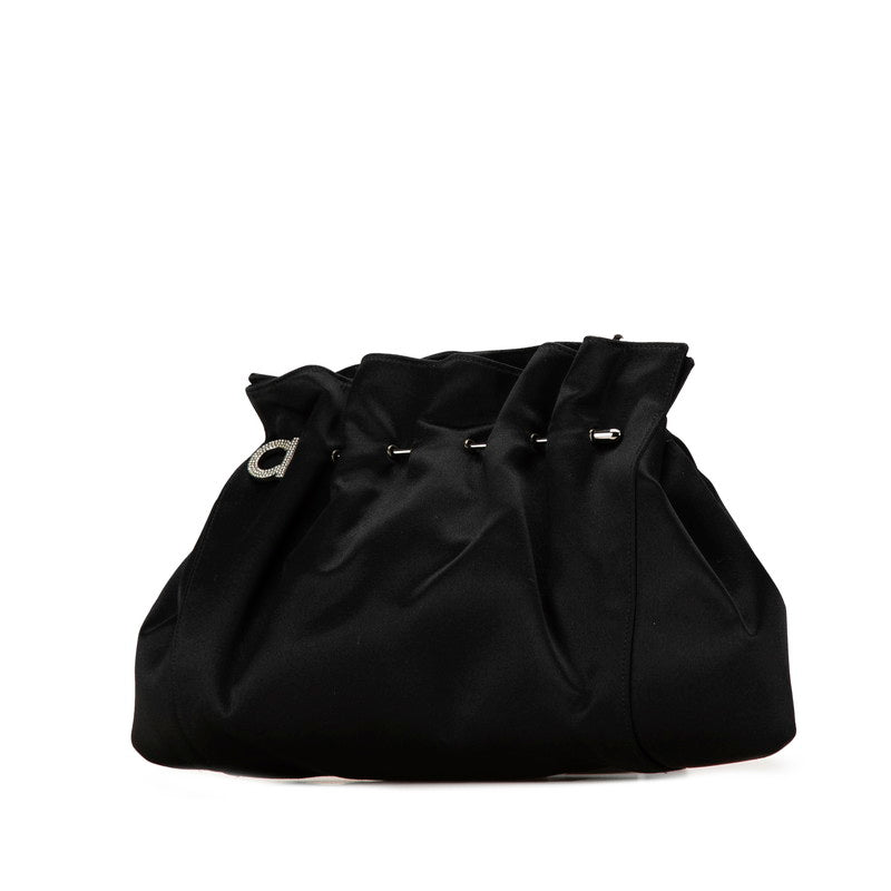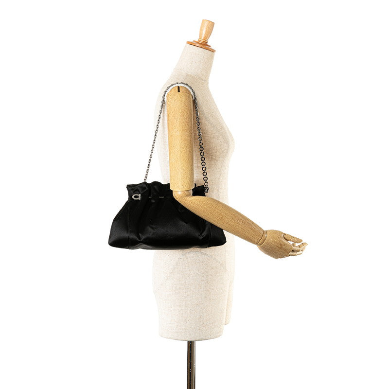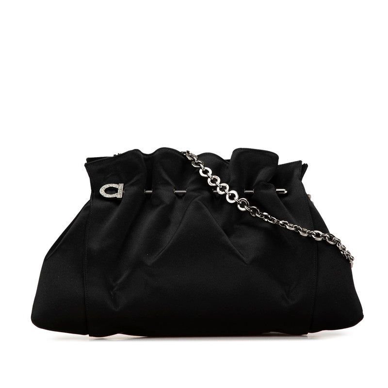 サルヴァトーレフェラガモ ガンチーニ ラインストーン チェーン ハンドバッグ パーティーバッグ ブラック シルバー スウェード レディース Salvatore Ferragamo 【中古】
