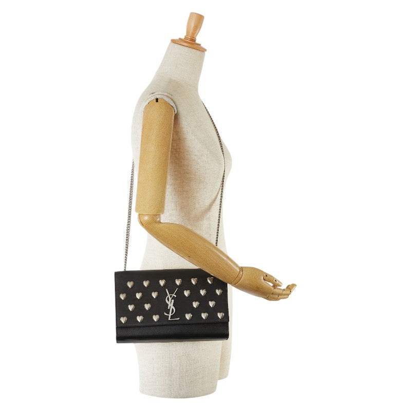 サンローラン ケイト ハート モチーフ スタッズ チェーン ショルダーバッグ ブラック シルバー レザー レディース SAINT LAURENT 【中古】