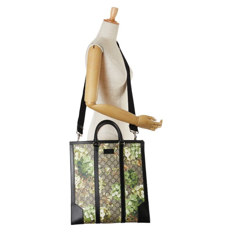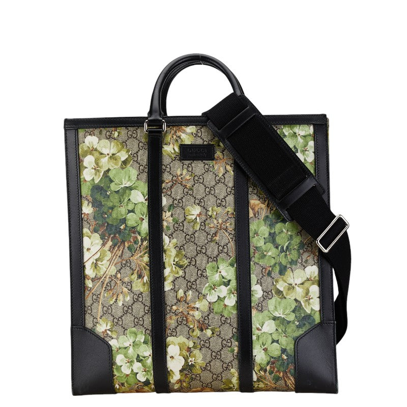 グッチ GGブルームス フラワー 花 モチーフ トートバッグ ハンドバッグ ショルダーバッグ 2WAY 406387 ベージュ ブラック グリーン PVC レザー レディース GUCCI 【中古】