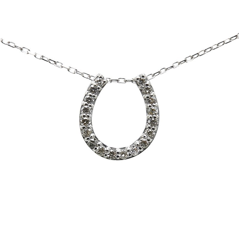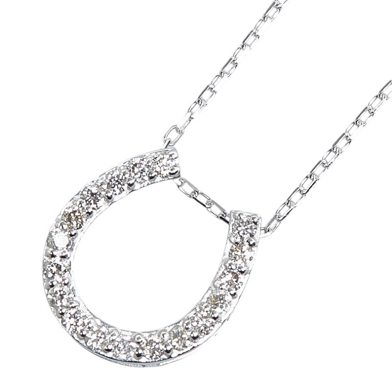 オンワード K18WG ホワイトゴールド ダイヤ0.20ct 組曲 ホースシュー 馬蹄 モチーフ ペンダントネックレス レディース ONWARD 【中古】