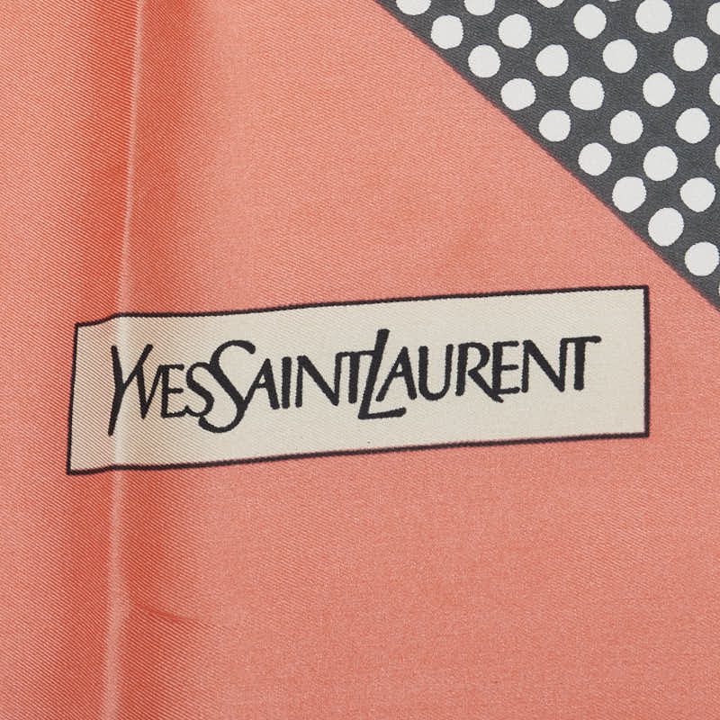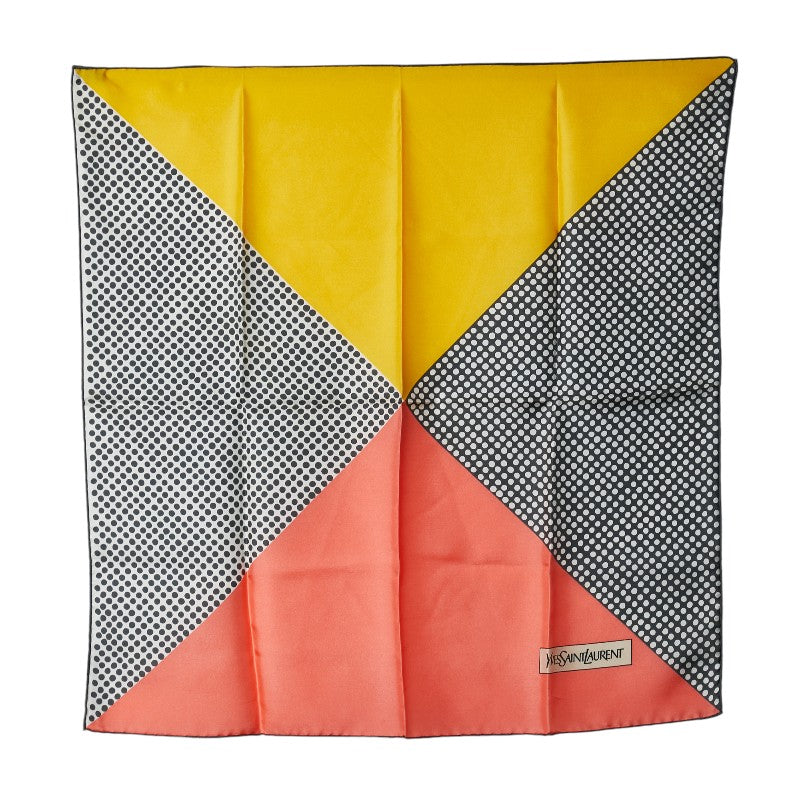 サンローラン 水玉 モチーフ スカーフ グレー ピンク イエロー シルク レディース SAINT LAURENT 【中古】