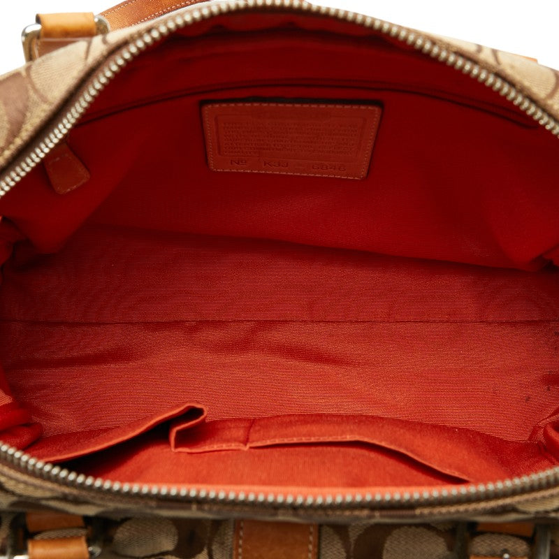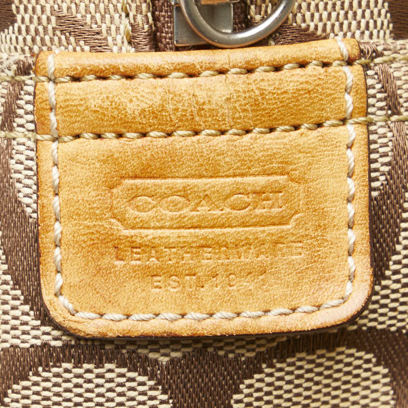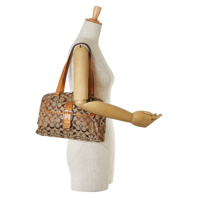 コーチ シグネチャー ハンドバッグ ショルダーバッグ ブラウン キャンバス レザー レディース COACH 【中古】