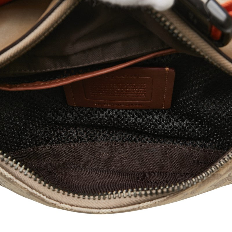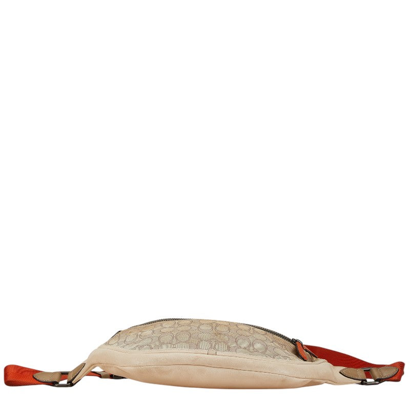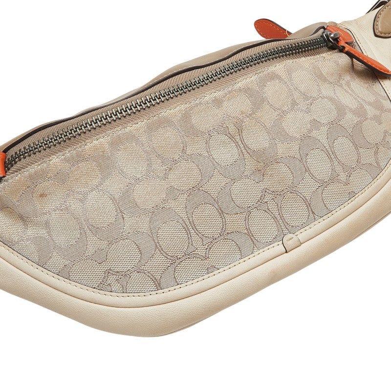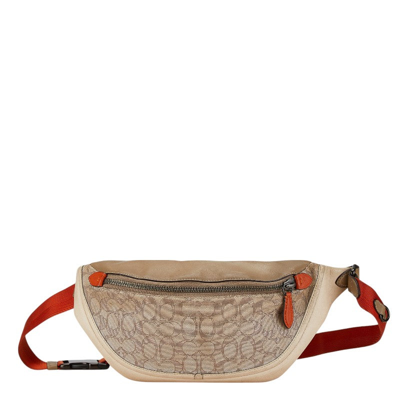 コーチ シグネチャー リーグ ベルトバッグ ウエストバッグ ボディバッグ C3795 ベージュ オレンジ キャンバス レザー レディース COACH 【中古】