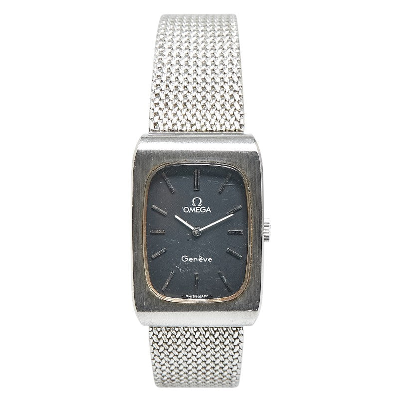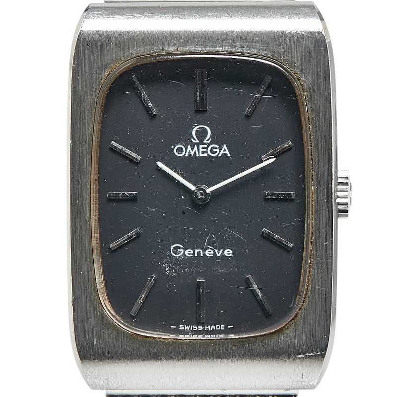オメガ ジュネーブ 腕時計 手巻き ブラック文字盤 ステンレススチール メンズ OMEGA 【中古】