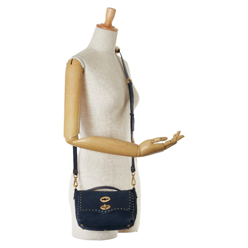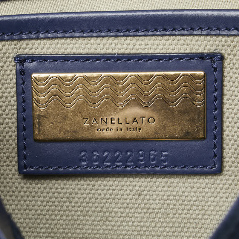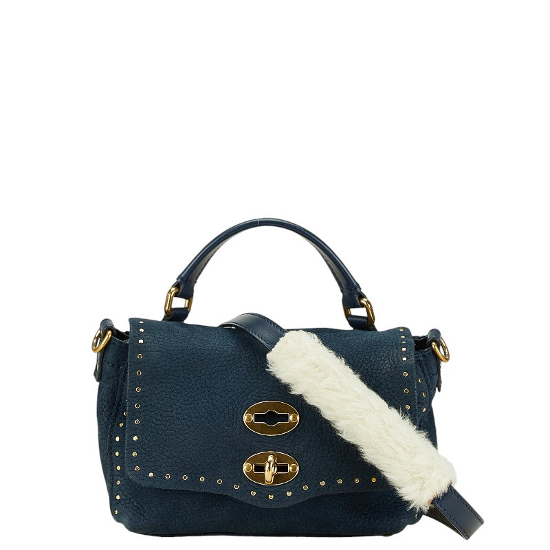 ザネラート ポスティーナ ハンドバッグ ショルダーバッグ 2WAY ブルー レザー ウール レディース ZANELLATO 【中古】