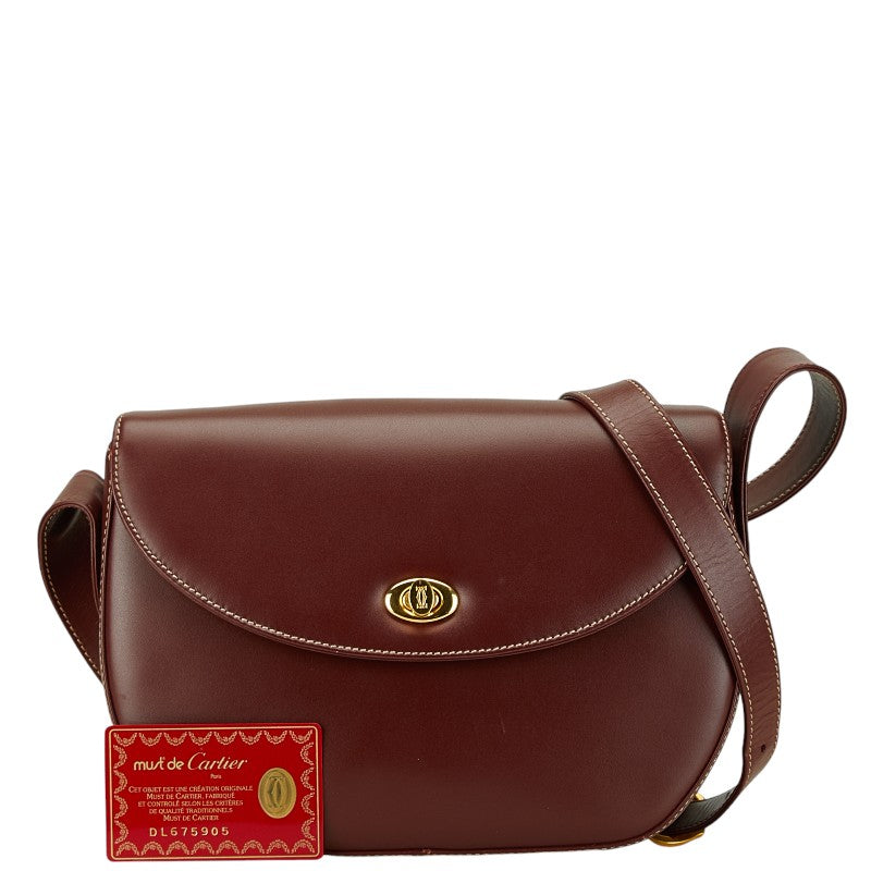 カルティエ マストライン ショルダーバッグ ワインレッド レザー レディース CARTIER 【中古】