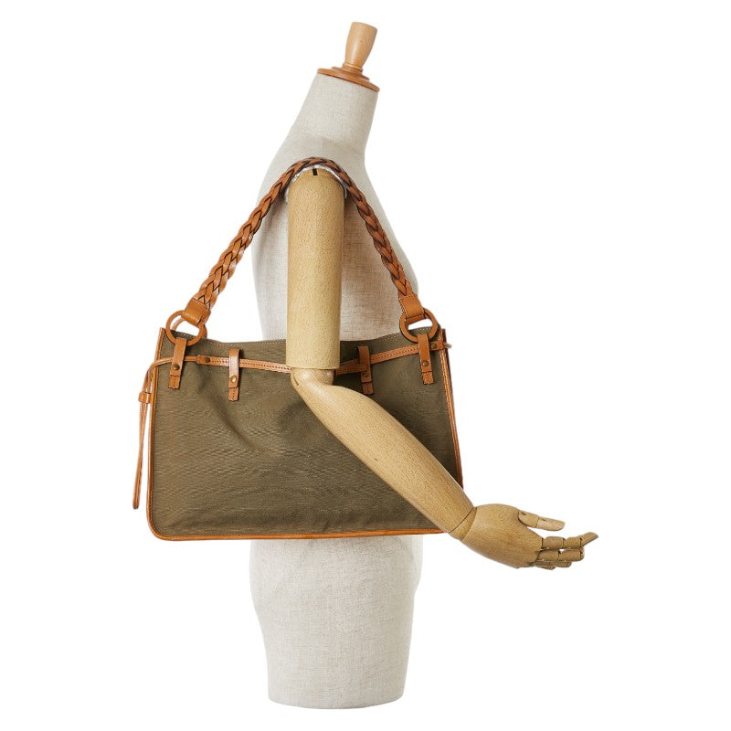 グッチ トートバッグ ハンドバッグ 109133 カーキ ブラウン キャンバス レザー レディース GUCCI 【中古】