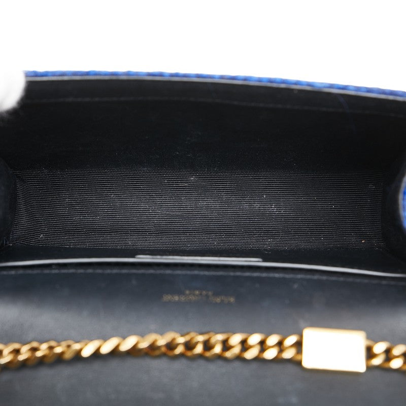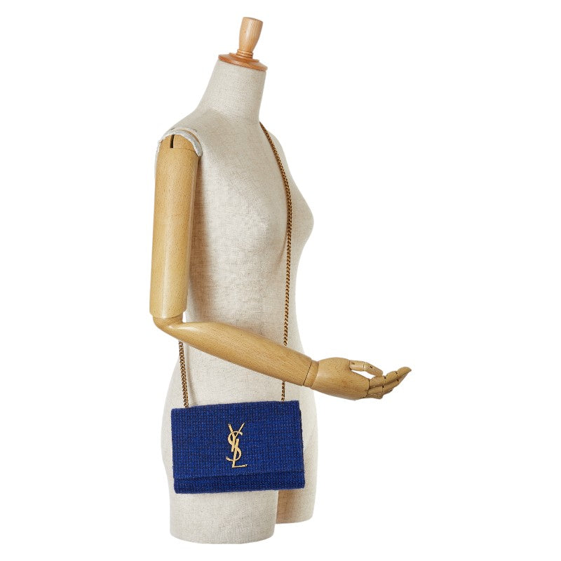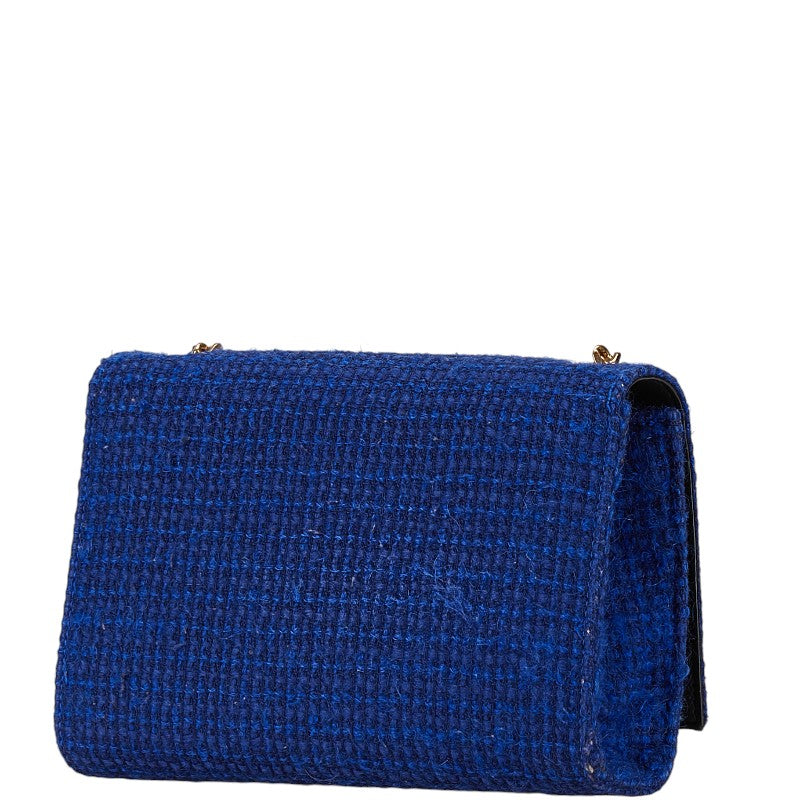 サンローラン YSLロゴ チェーンショルダーバッグ ハンドバッグ ブルー ツイード レディース SAINT LAURENT 【中古】