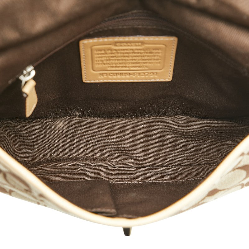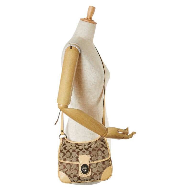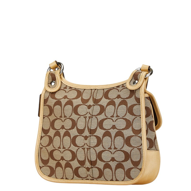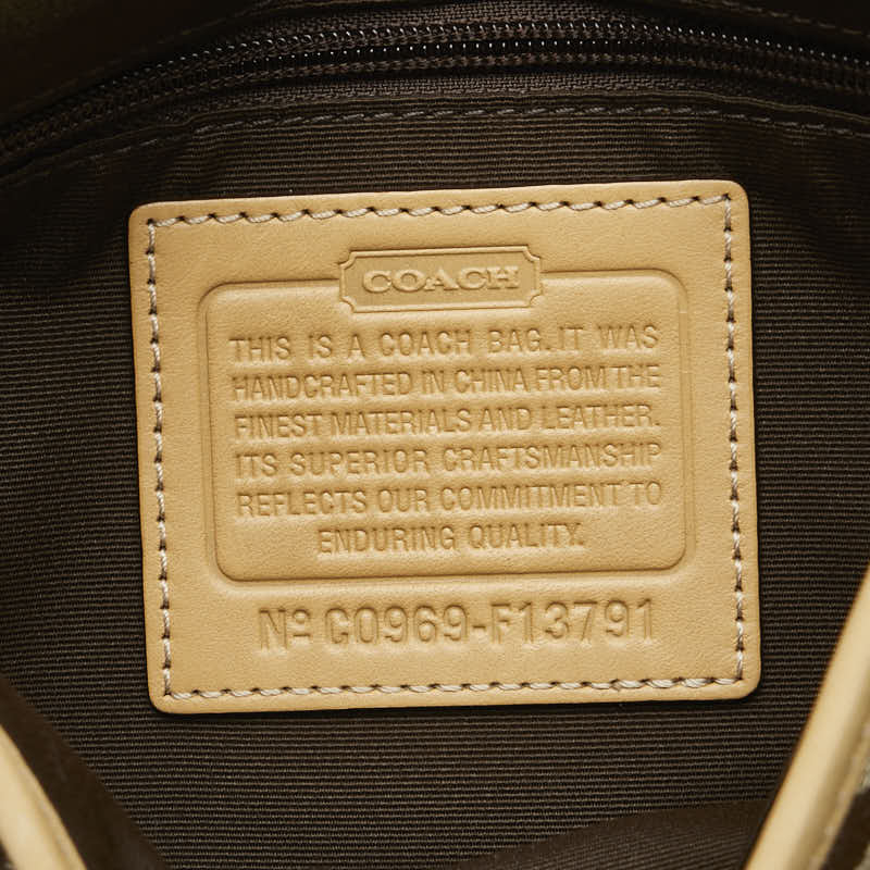 コーチ シグネチャー 斜め掛け ショルダーバッグ F13791 キャメル ベージュ キャンバス レザー レディース COACH 【中古】