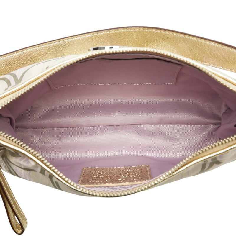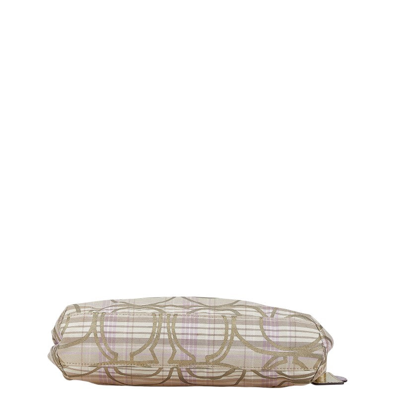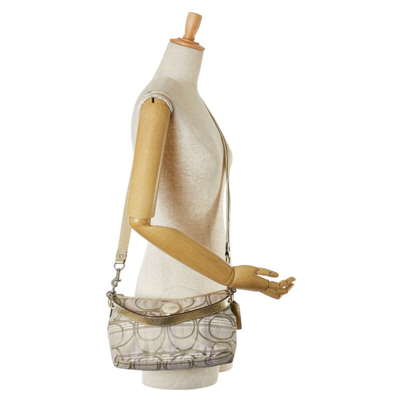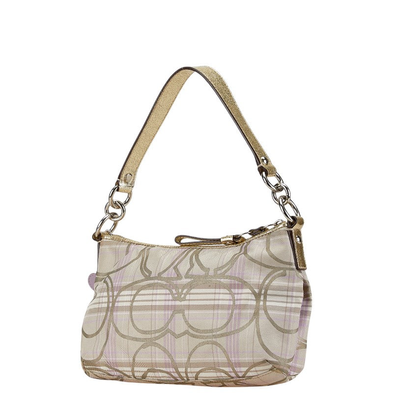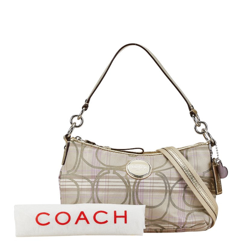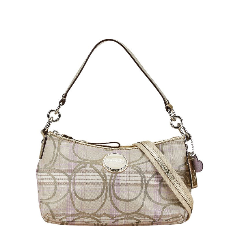 コーチ チェック シグネチャー スプリングプレイド タータン ハンドバッグ ショルダーバッグ 2WAY F17210 ベージュ パープル ゴールド キャンバス レザー レディース COACH 【中古】