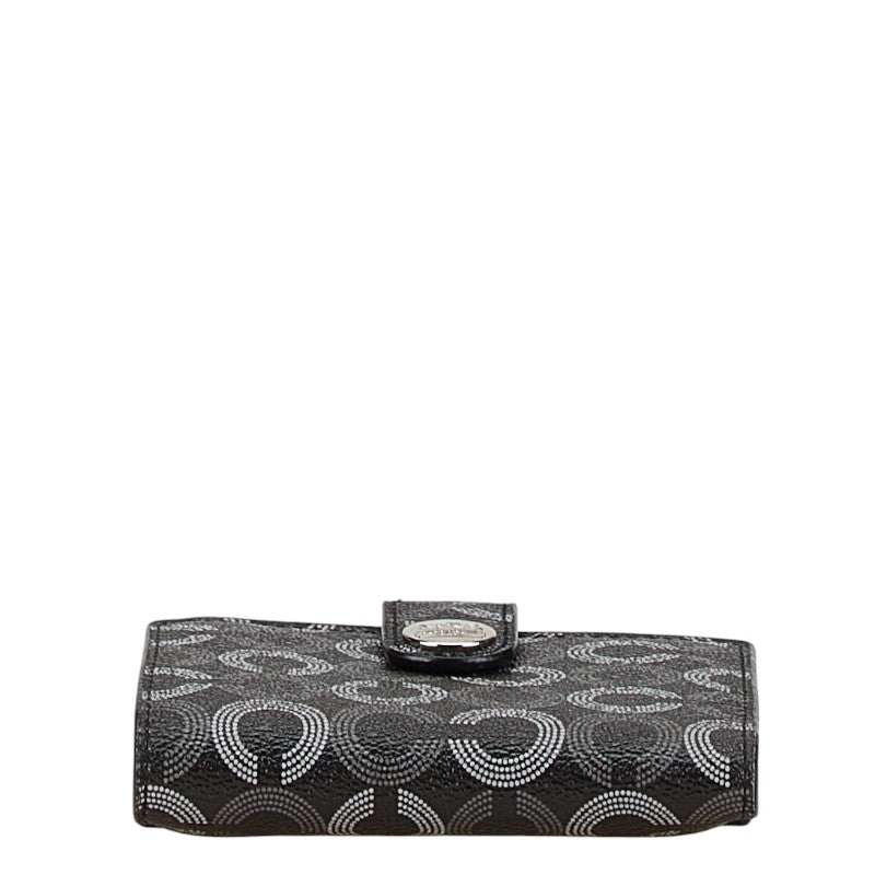 コーチ オプアート 二つ折り財布 ブラック PVC レザー レディース COACH 【中古】