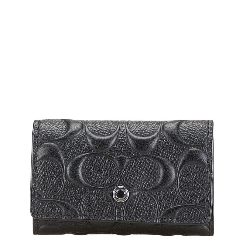 コーチ シグネチャー キーケース 5連 F76986 ブラック レザー レディース COACH 【中古】