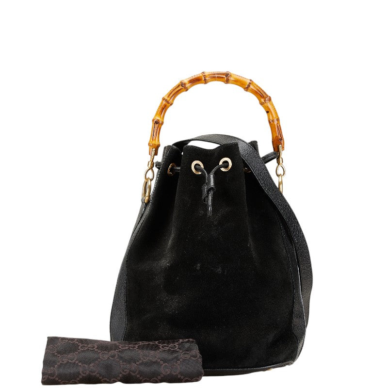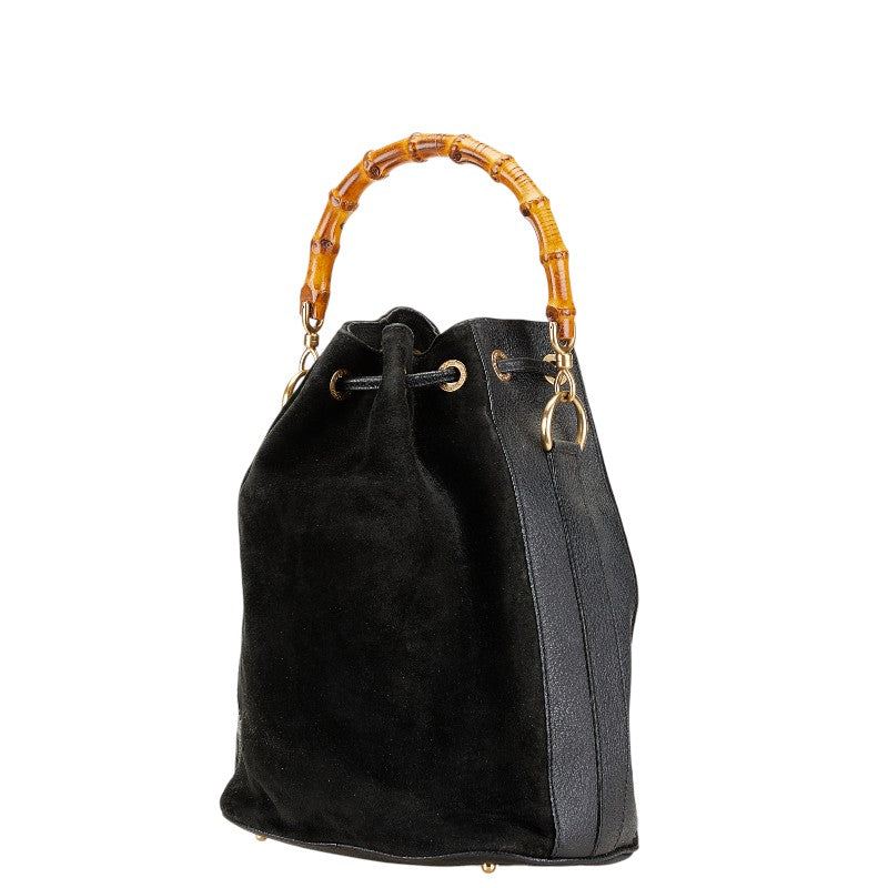 グッチ バンブー ハンドバッグ ショルダーバッグ 2WAY 001 2855 1657 0 ブラック ブラウン スウェード レザー レディース GUCCI 【中古】