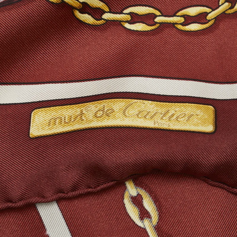 カルティエ チェーン ベルト ロゴ スカーフ ワインレッド マルチカラー シルク レディース CARTIER 【中古】