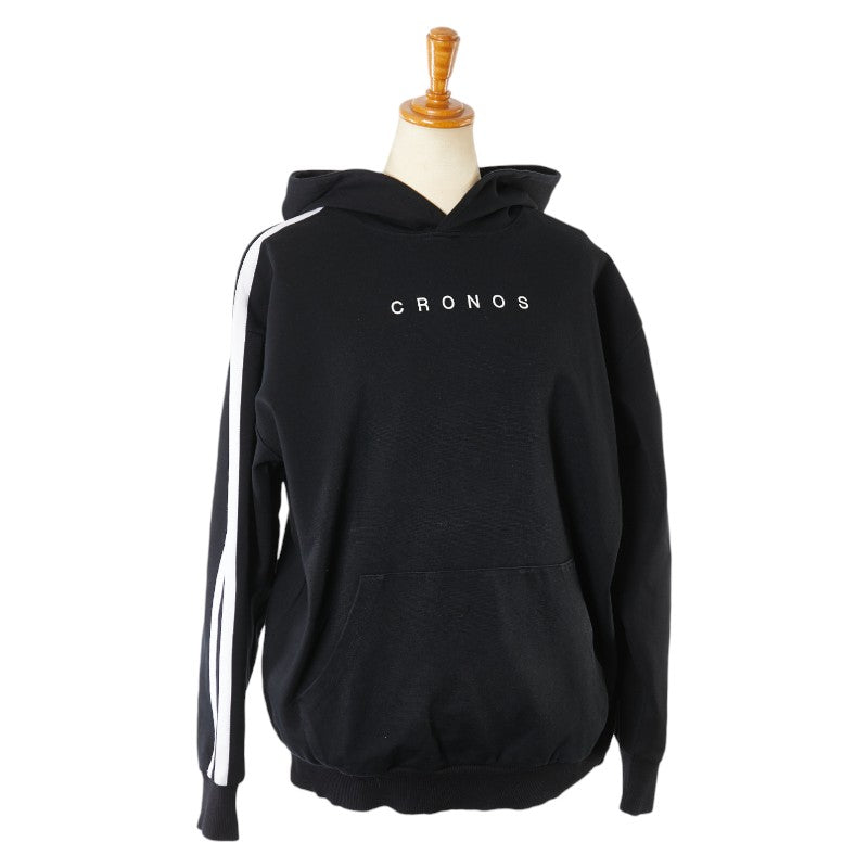 クロノス ロゴ サイドライン セットアップ プルオーバーパーカー フーディー サイズ:M ブラック ホワイト コットン ナイロン レディース 【中古】