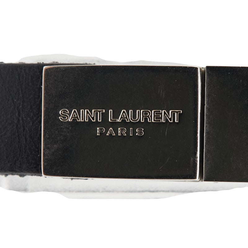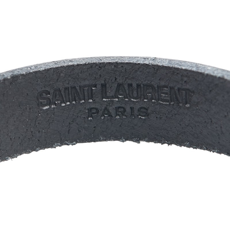 サンローラン YSLロゴ ブレスレット ブラック シルバー レザー レディース SAINT LAURENT 【中古】