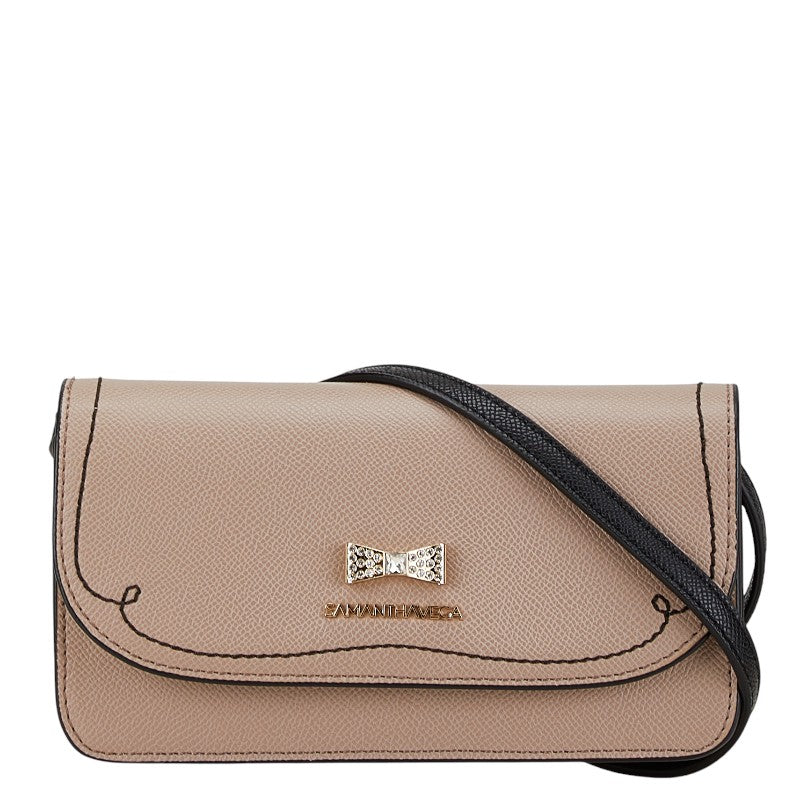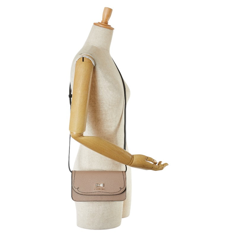 サマンサタバサ ビジューリボン 斜め掛け ショルダーバッグ モカ グレージュ ブラック レザー レディース Samantha Thavasa 【中古】