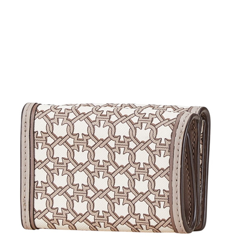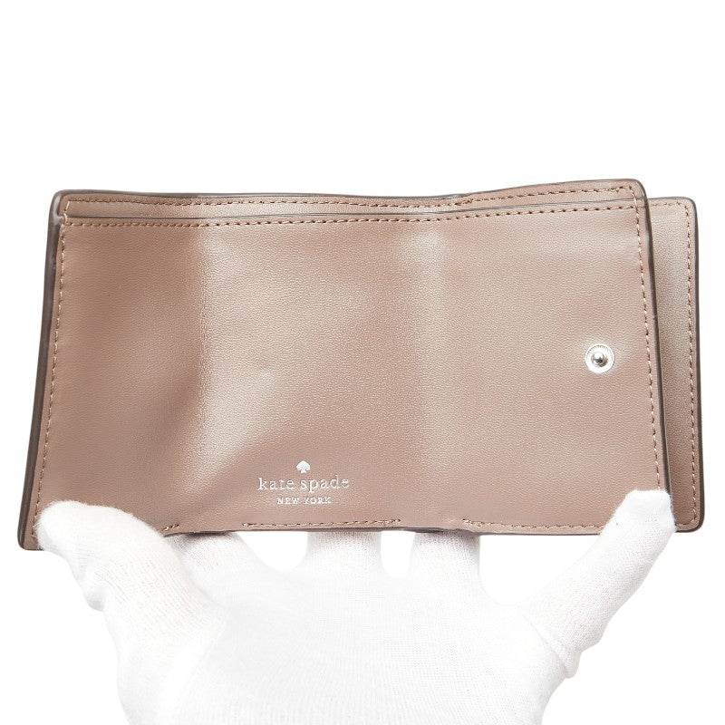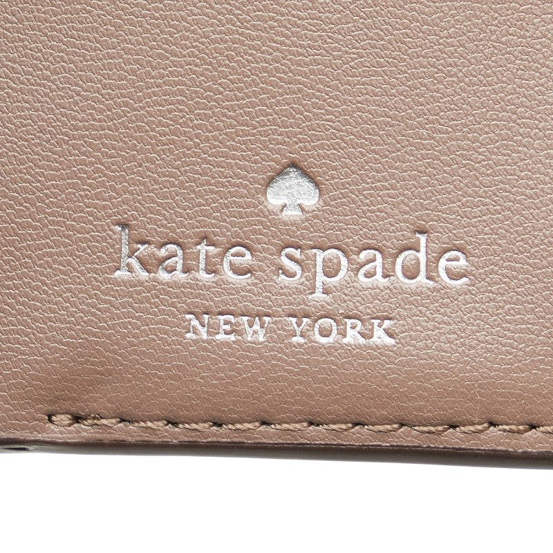 ケイトスペード スペード柄 総柄 三つ折り財布 コンパクトウォレット WLRU6293 グレージュ ホワイト PVC レザー レディース Kate Spade 【中古】