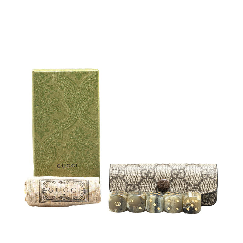 グッチ GGスプリーム サイコロ 星 スター モチーフ ダイス ケース セット 662292 カーキ PVC レジン メンズ GUCCI 【中古】