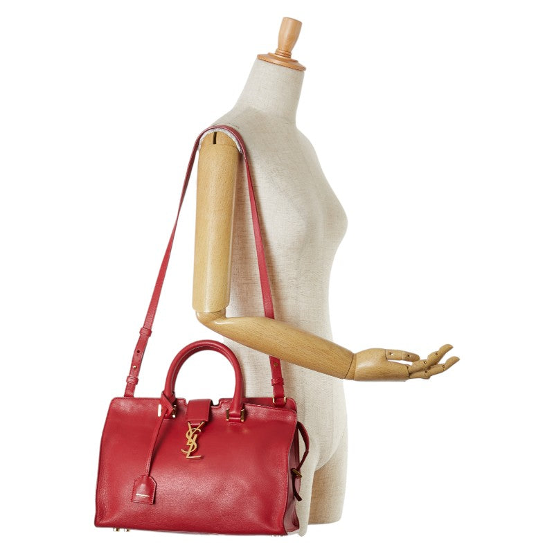サンローラン YSLロゴ ベイビーカバス ハンドバッグ ショルダーバッグ 2WAY 394461 レッド レザー レディース SAINT LAURENT 【中古】