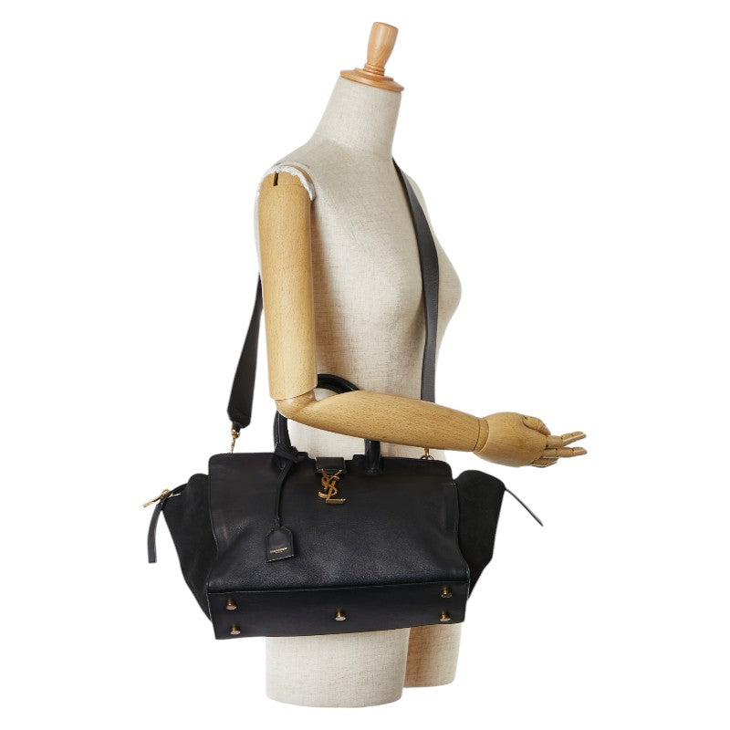サンローラン YSLロゴ ダウンタウン カバス ハンドバッグ ショルダーバッグ 2WAY 436832 ブラック レザー スウェード レディース SAINT LAURENT 【中古】