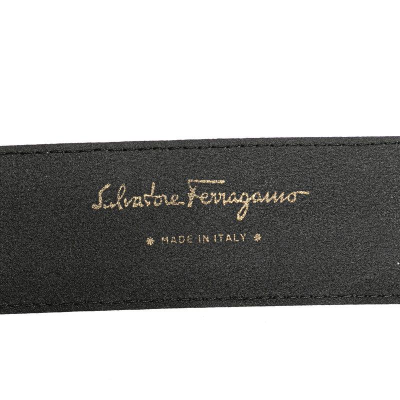 サルヴァトーレフェラガモ ヴァラ ベルト ブラック ゴールド スウェード レディース Salvatore Ferragamo 【中古】