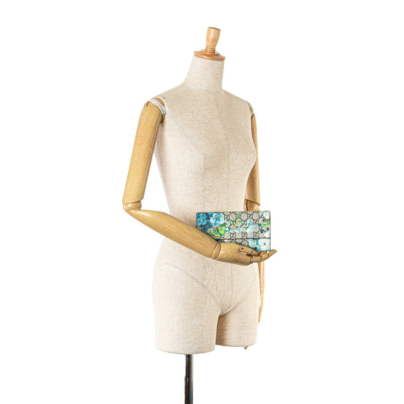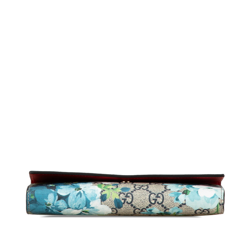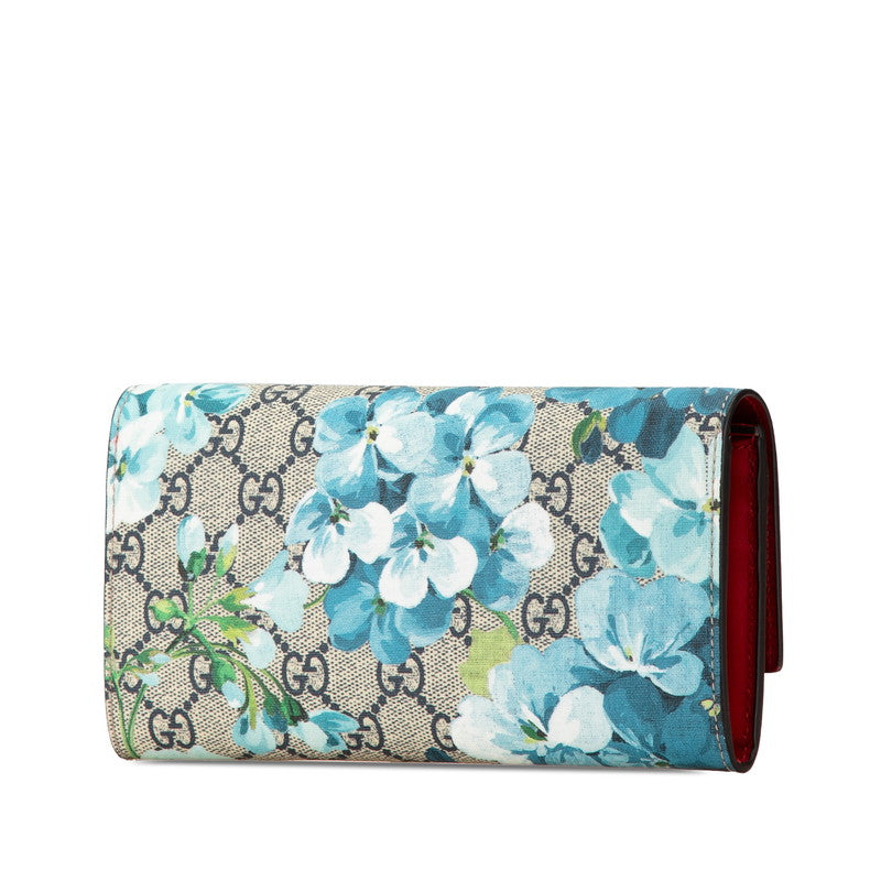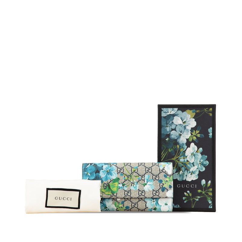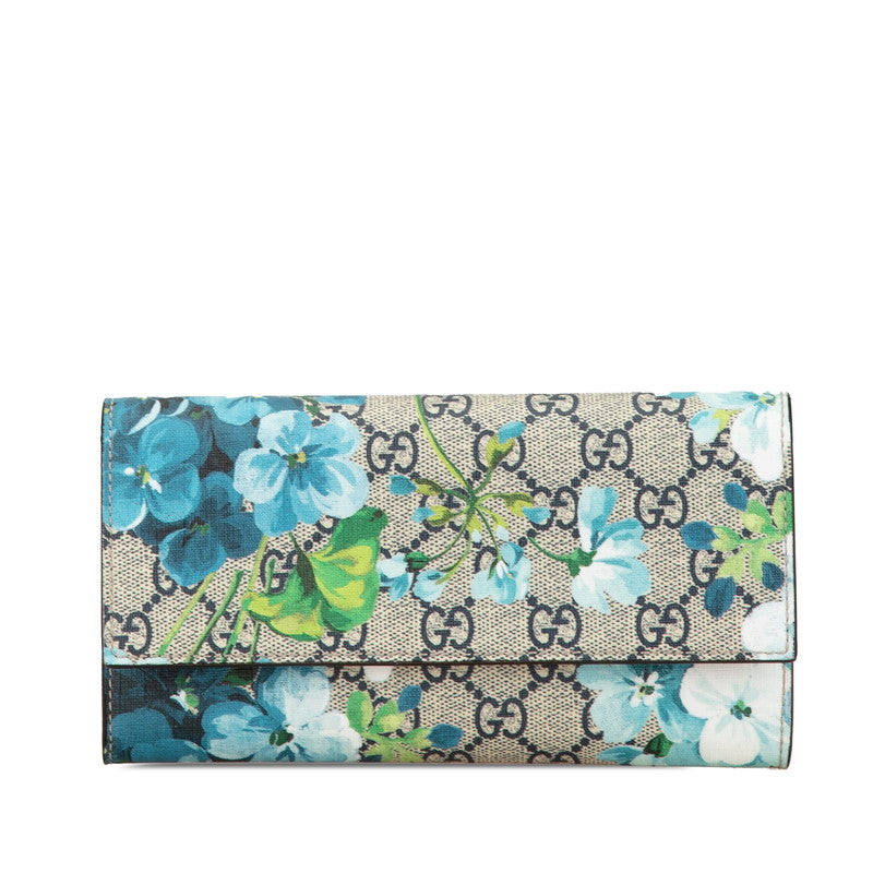 グッチ GGブルームス フローラ フラワー 花 長財布 コンチネンタルウォレット 404070 ベージュ ブルー PVC レザー レディース GUCCI 【中古】