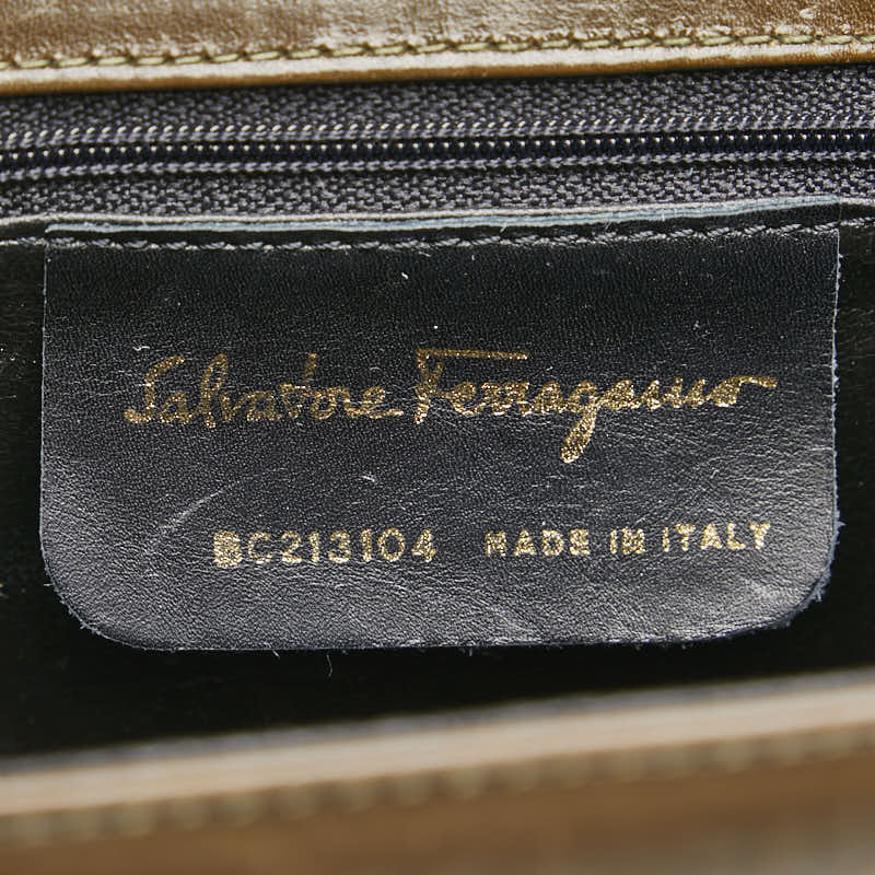 サルヴァトーレフェラガモ ヴァラリボン ハンドバッグ ショルダーバッグ 2WAY ブラウン レザー キャンバス レディース Salvatore Ferragamo 【中古】