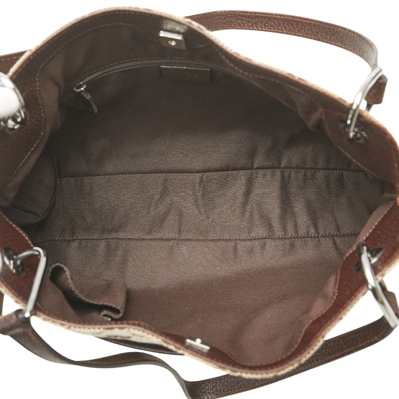 グッチ GGキャンバス ハンドバッグ トートバッグ 121023 ベージュ ブラウン キャンバス レザー レディース GUCCI 【中古】