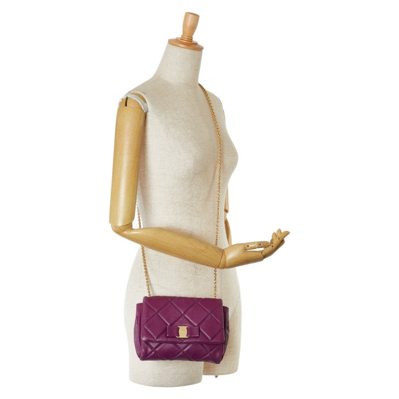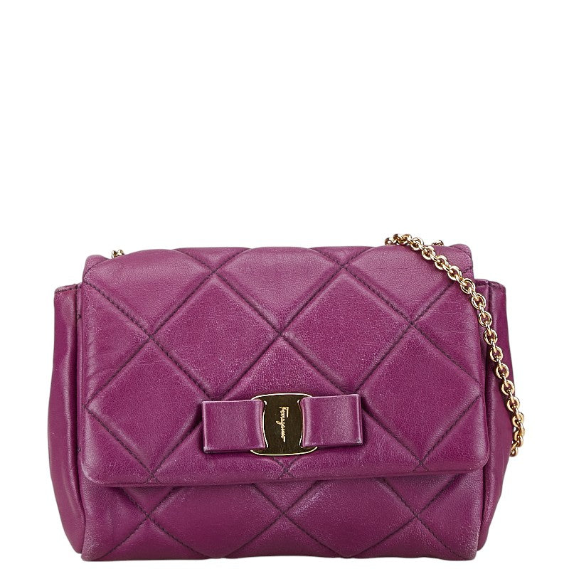 サルヴァトーレフェラガモ ヴァラリボン キルティング 斜め掛け チェーン ショルダーバッグ AU-22 C150 パープル レザー レディース Salvatore Ferragamo 【中古】