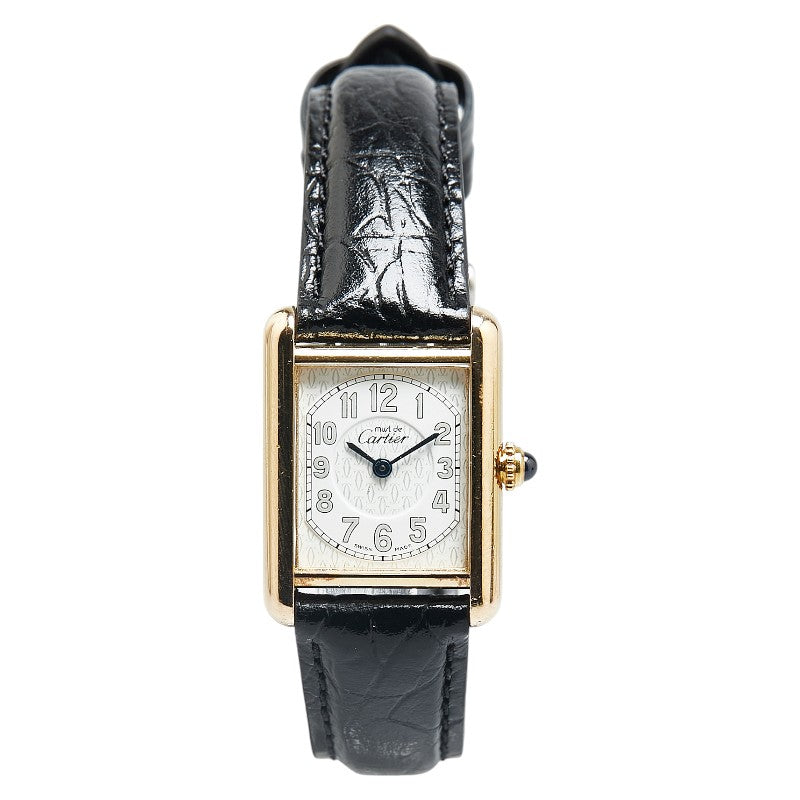 カルティエ マストタンク ヴェルメイユ 腕時計 2415 クオーツ ホワイト文字盤 SV925 シルバー レザー レディース CARTIER 【中古】
