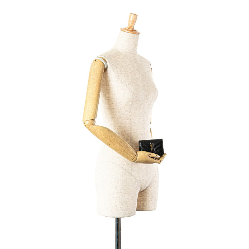 サンローラン YSL モノグラム キルティング 三つ折り財布 ブラック レザー レディース SAINT LAURENT 【中古】