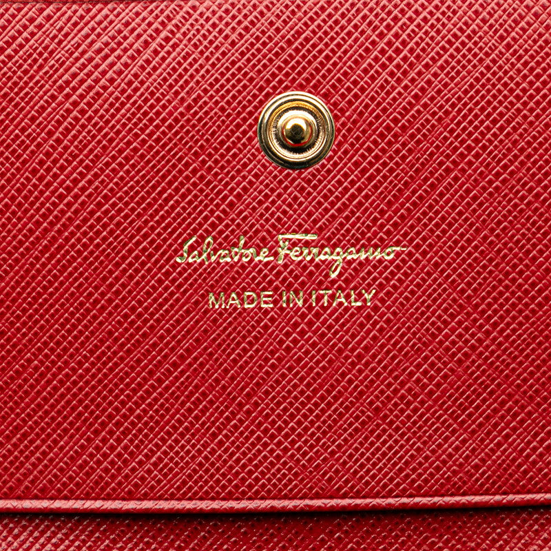 サルヴァトーレフェラガモ サルバトーレ カードケース 名刺入れ レッド ゴールド レザー レディース Salvatore Ferragamo 【中古】