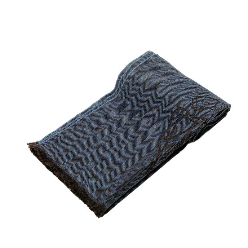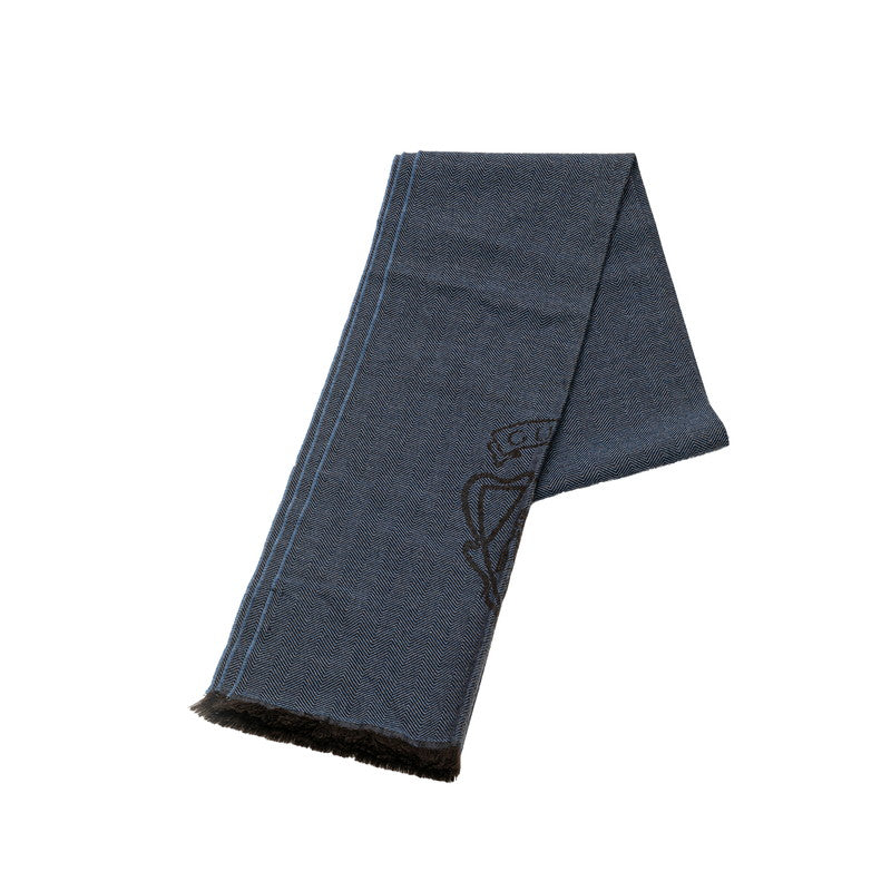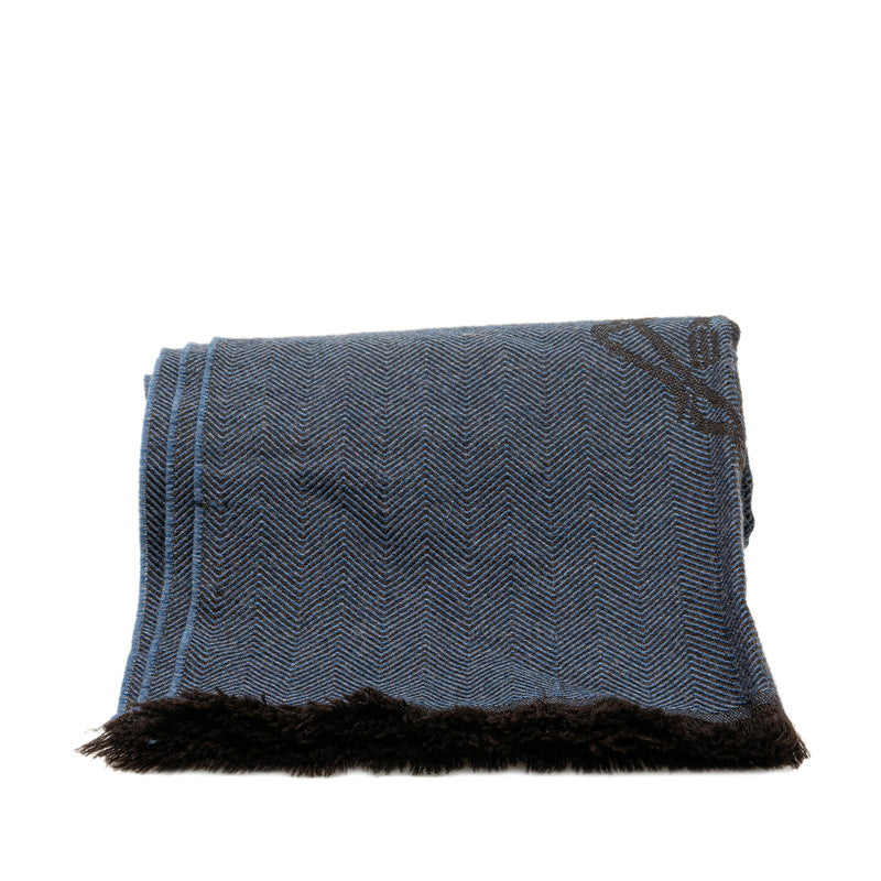 グッチ エンブレム クレスト ヘリンボン マフラー 08.338.986 ブルー ブラウン ウール レディース GUCCI 【中古】