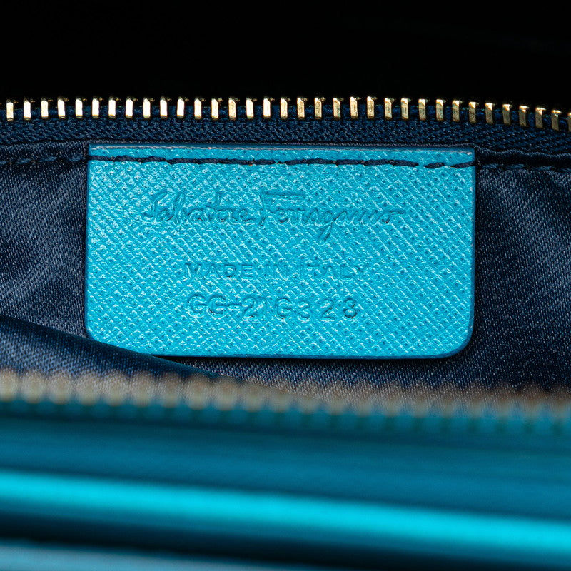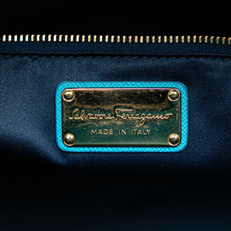 サルヴァトーレフェラガモ ガンチーニ ハンドバッグ ショルダーバッグ 2WAY ネイビー ブルー レザー レディース Salvatore Ferragamo 【中古】