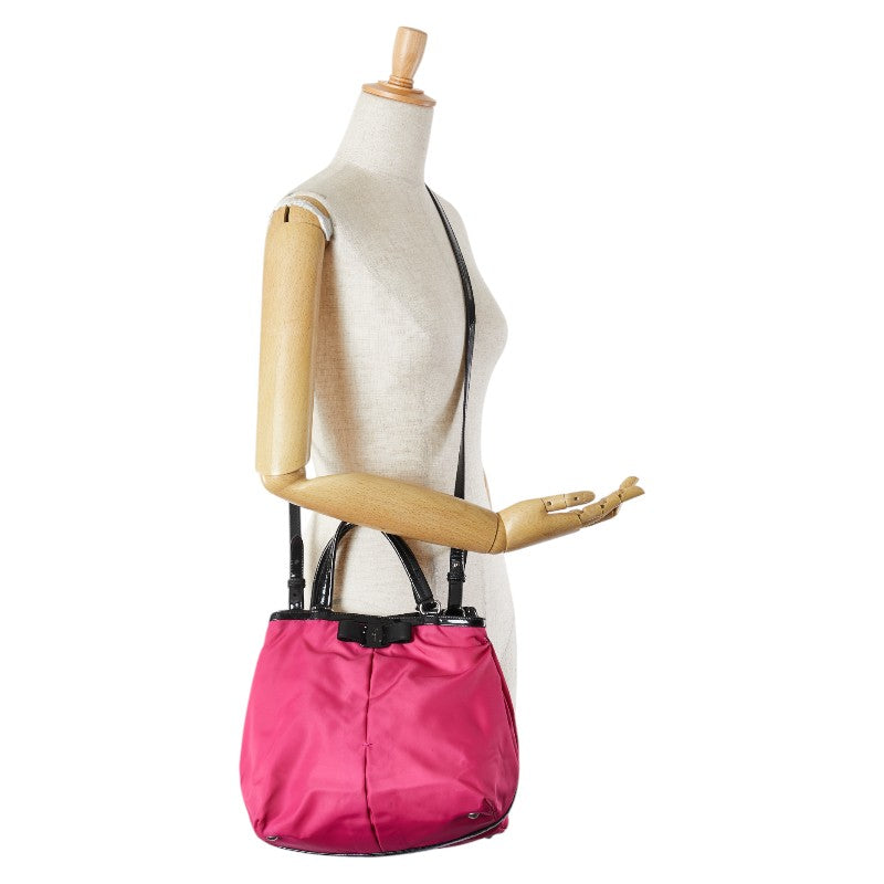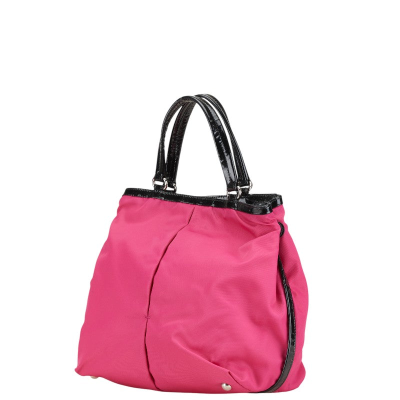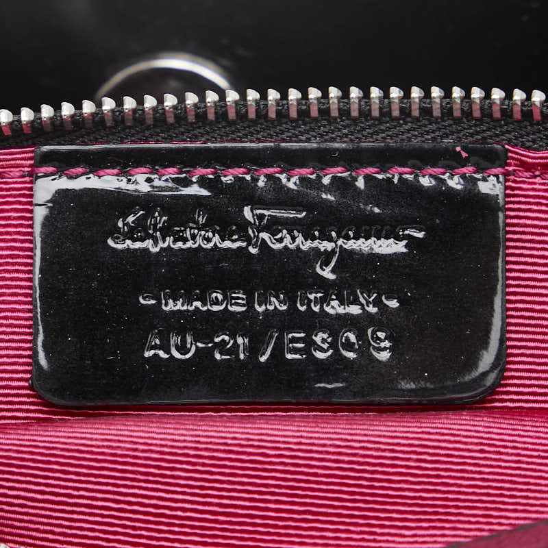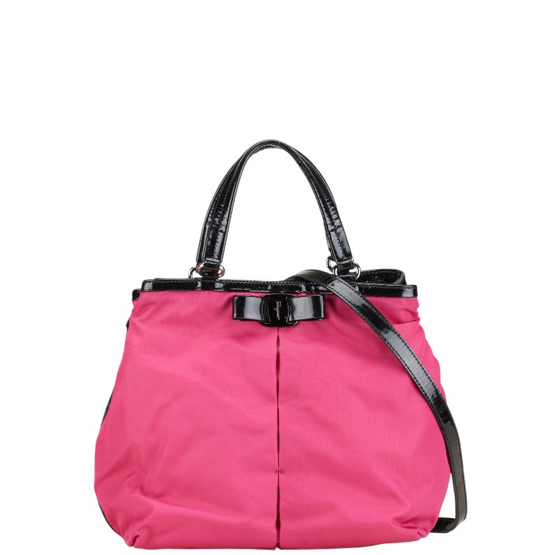 サルヴァトーレフェラガモ ヴァラ リボン ハンドバッグ ショルダーバッグ 2WAY ピンク ブラック ナイロン レザー レディース Salvatore Ferragamo 【中古】
