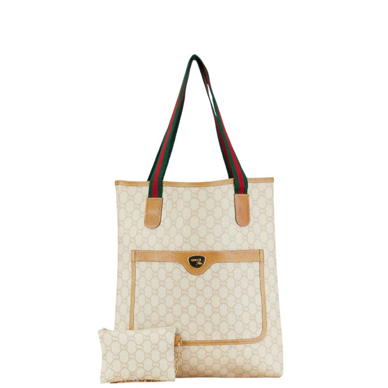グッチ GGプラス シェリーライン トートバッグ ベージュ ブラウン マルチカラー PVC レザー レディース GUCCI 【中古】