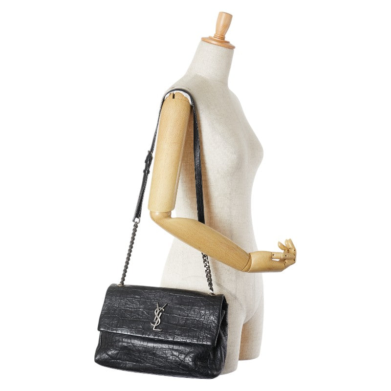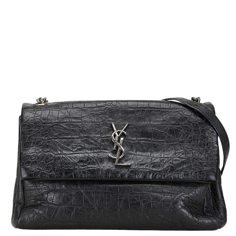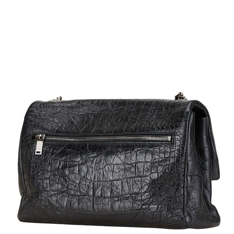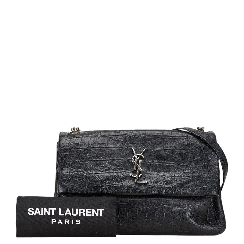 サンローラン クロコ型押し ウェストハリウッド YSLロゴ 斜め掛け チェーン ショルダーバッグ 574106 ブラック レザー レディース SAINT LAURENT 【中古】