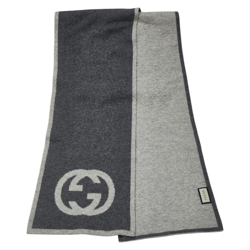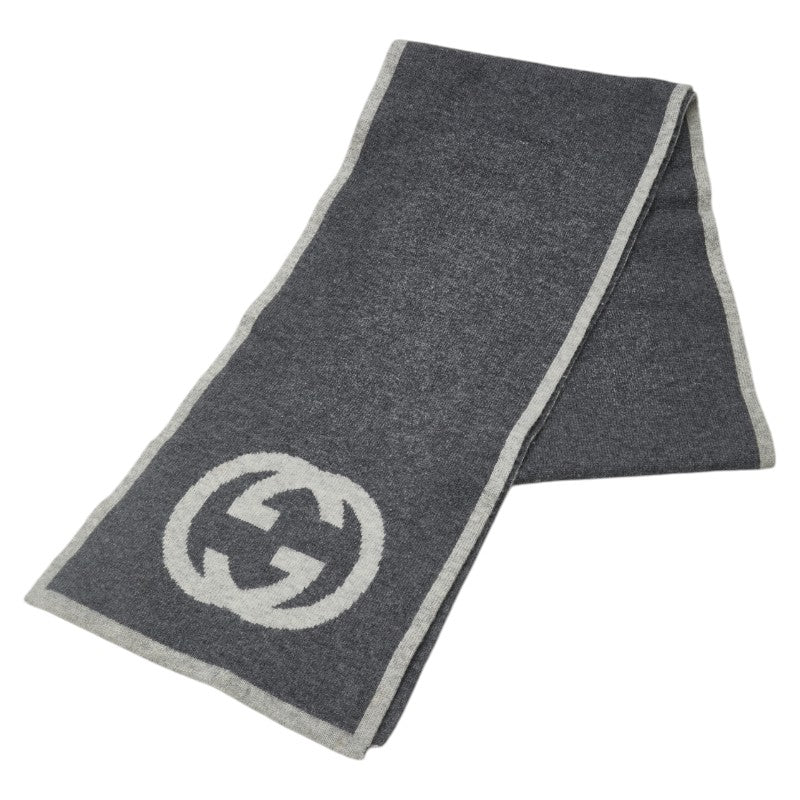 グッチ インターロッキングG マフラー 548247 グレー カシミヤ レディース GUCCI 【中古】