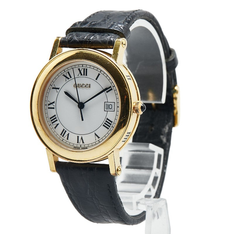 グッチ 腕時計 7200M クオーツ ホワイト文字盤 メッキ レザー レディース GUCCI 【中古】
