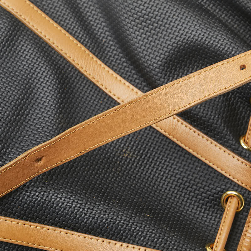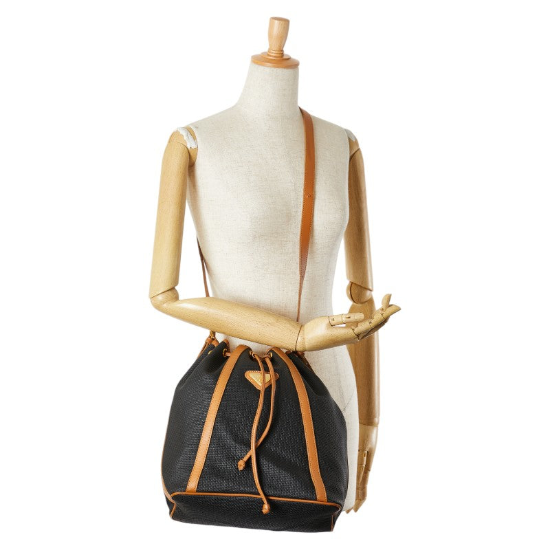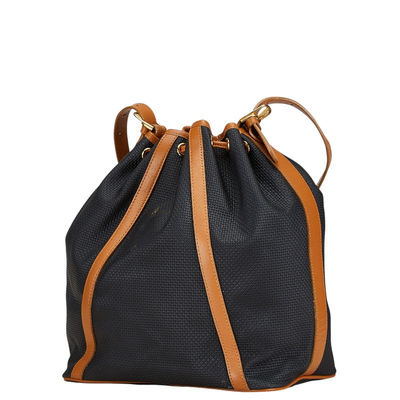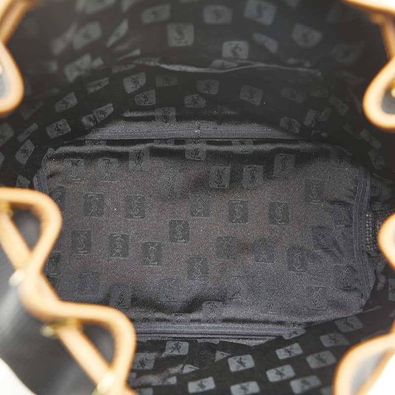 サンローラン YSLプレート ショルダーバッグ 巾着バッグ ブラック ブラウン PVC レザー レディース SAINT LAURENT 【中古】