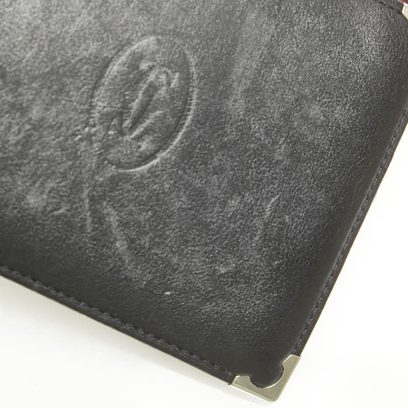 カルティエ マストライン 二つ折り財布 ブラック レザー レディース CARTIER 【中古】