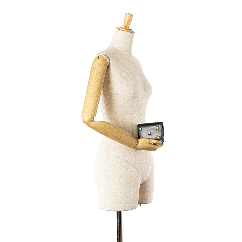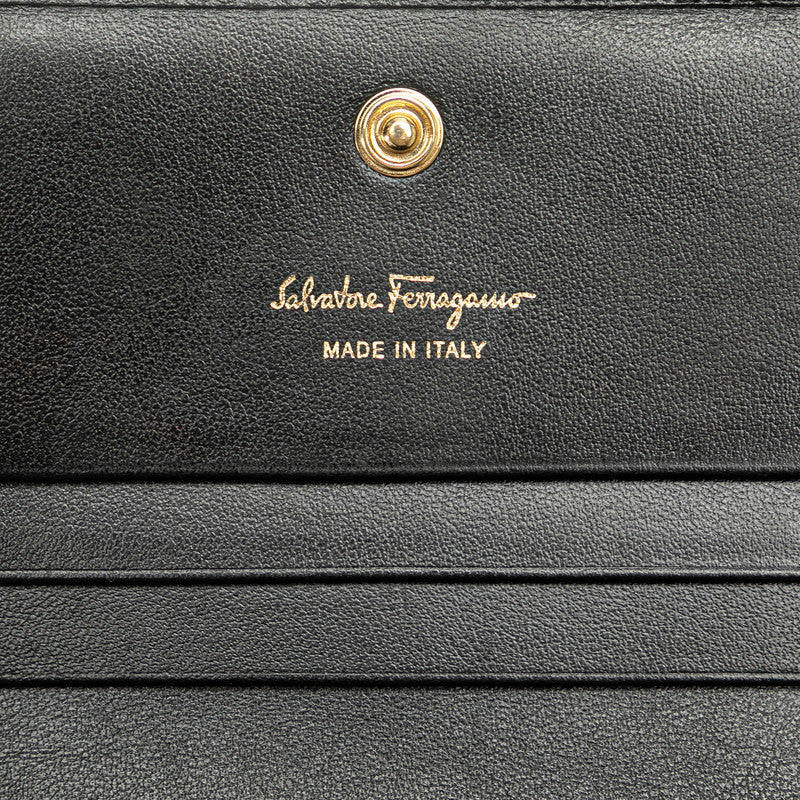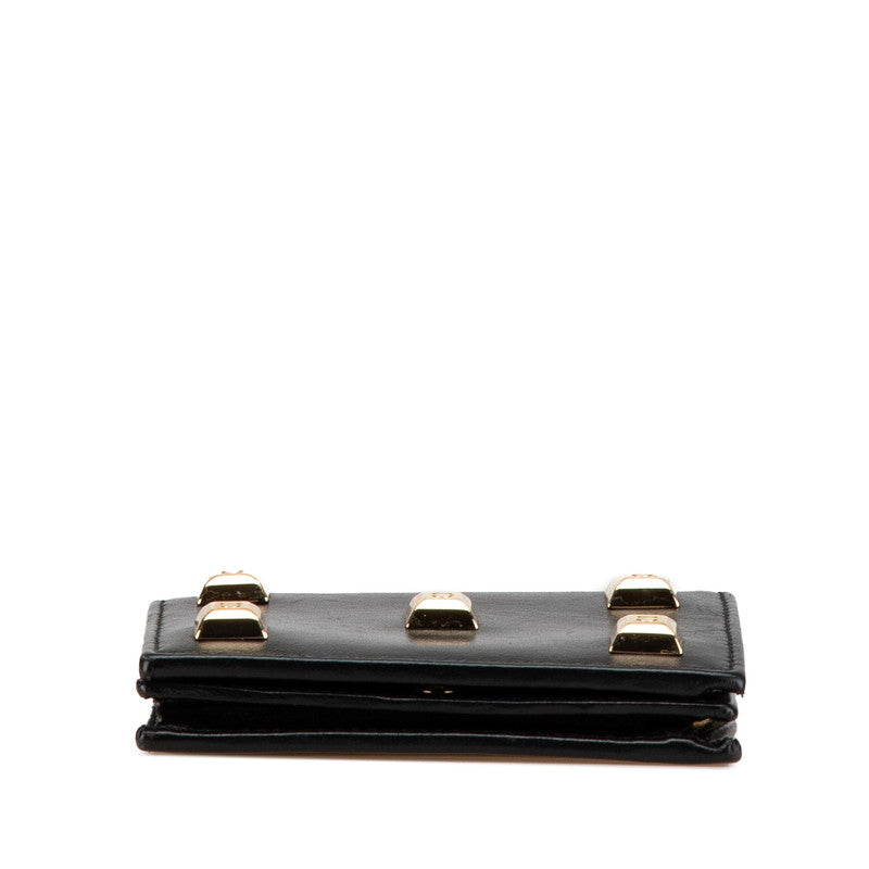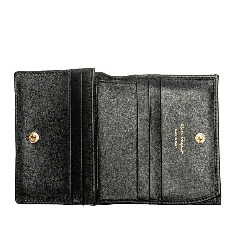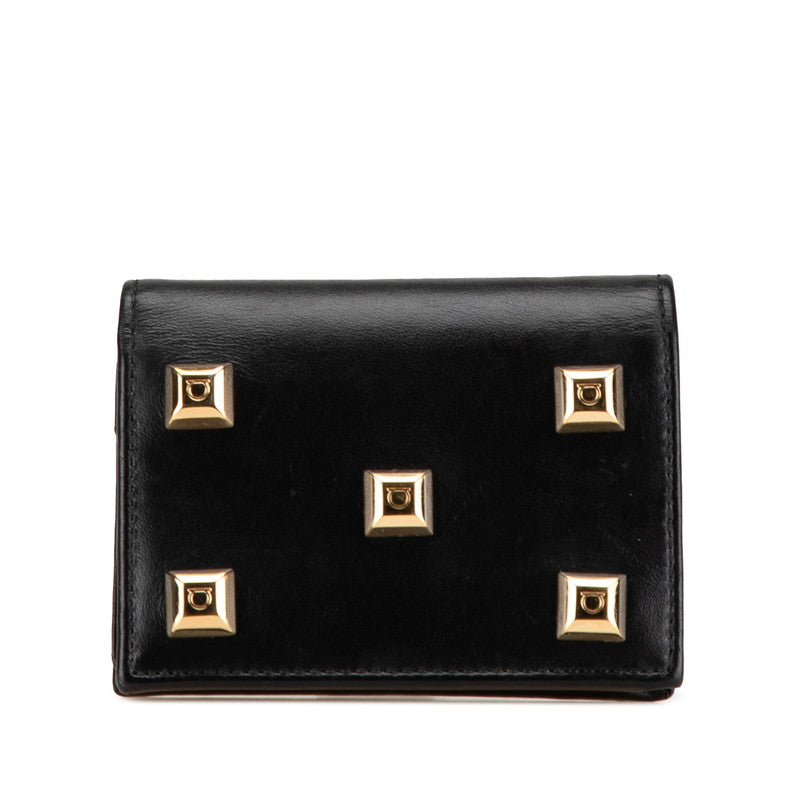 サルヴァトーレフェラガモ ガンチーニ スタッズ 二つ折り財布 コンパクトウォレット 22D570 ブラック ゴールド レザー レディース Salvatore Ferragamo 【中古】