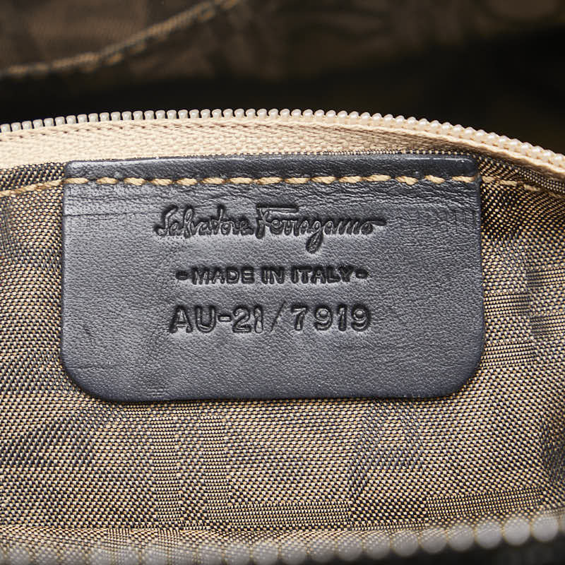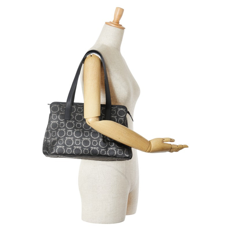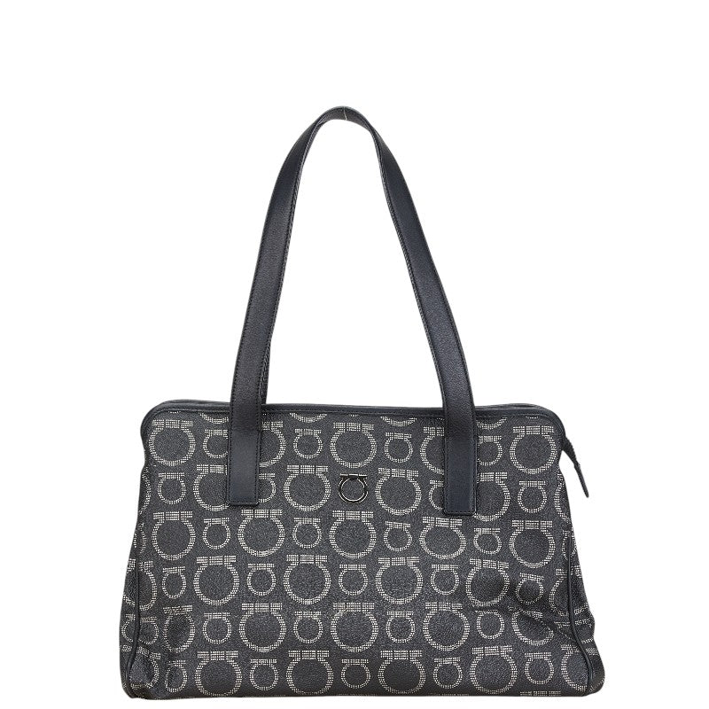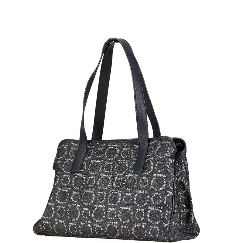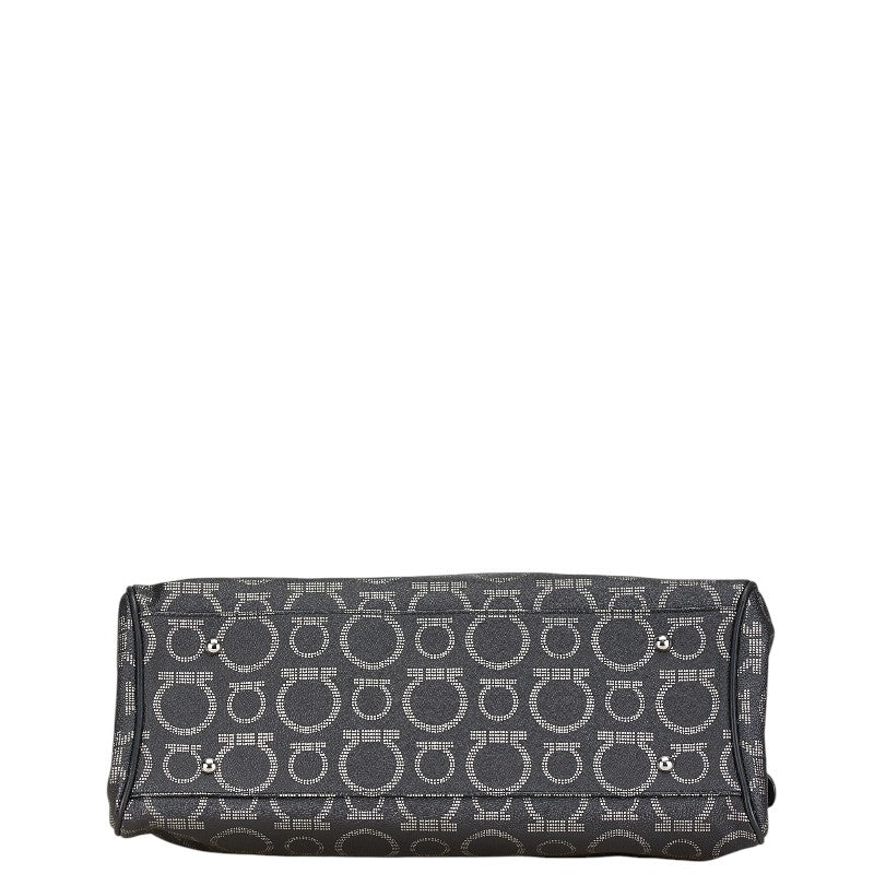 サルヴァトーレフェラガモ ガンチーニ トートバッグ ハンドバッグ AU-21/7919 ブラック シルバー PVC レザー レディース Salvatore Ferragamo 【中古】