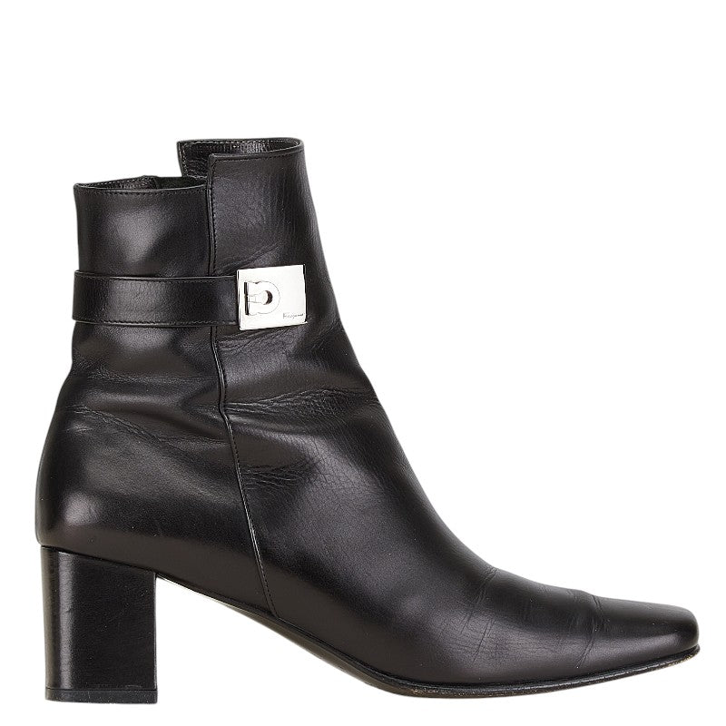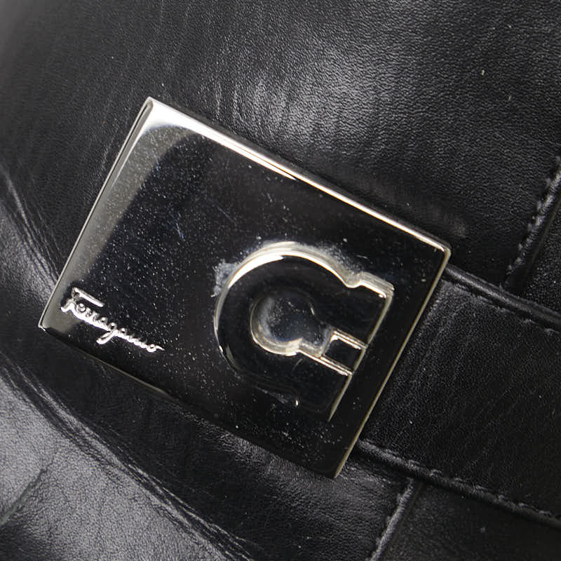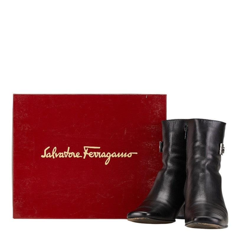 サルヴァトーレフェラガモ ガンチーニ ブーツ ショートブーツ サイズ:7C ブラック レザー レディース Salvatore Ferragamo 【中古】